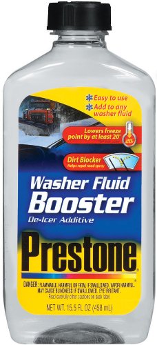 Prestone AS240 Windshield Washer Fluid Booster De-Icer Additive - 15.5 oz.Prestone AS240 Windshield Washer Fluid Booster De-Icer Additive - 15.5 oz. Detail : Engineered to quickly remove light ice and frost and helps to repel build-up of dirt and salt from road spray as you drive. Also helps prevent dangerous re-freeze from forming on your windshield. A precise blend of ice-melting alcohols ensures premium performance at even very low temperatures and helps prevent dangerous re-freeze from forming on windshields. Prestone's Dirt Blocker technology coats windshields with a resilient organo-modified siloxane copolymer. This formulation imparts a durable hydrophobic surface on the windshield that helps prevent road spray from adhering to windshield glass by moving dirt particles away from the windshield surface and into the washer fluid that beads and rolls off the glass. The robust formula is designed for use with any washer fluid to provide premium performance.