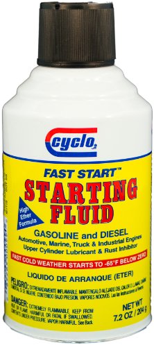 Cyclo C-99 Fast Start Starting Fluid - 7.2 oz., (Pack of 12)Cyclo C-99 Fast Start Starting Fluid - 7.2 oz., (Pack of 12) Detail : High ether formula creates fast cold weather starts to -65 Fahrenheit (-53 degree). Professional quality starting fluid for both gasoline and diesel engines. Contains upper cylinder lubricant and rust inhibitor.